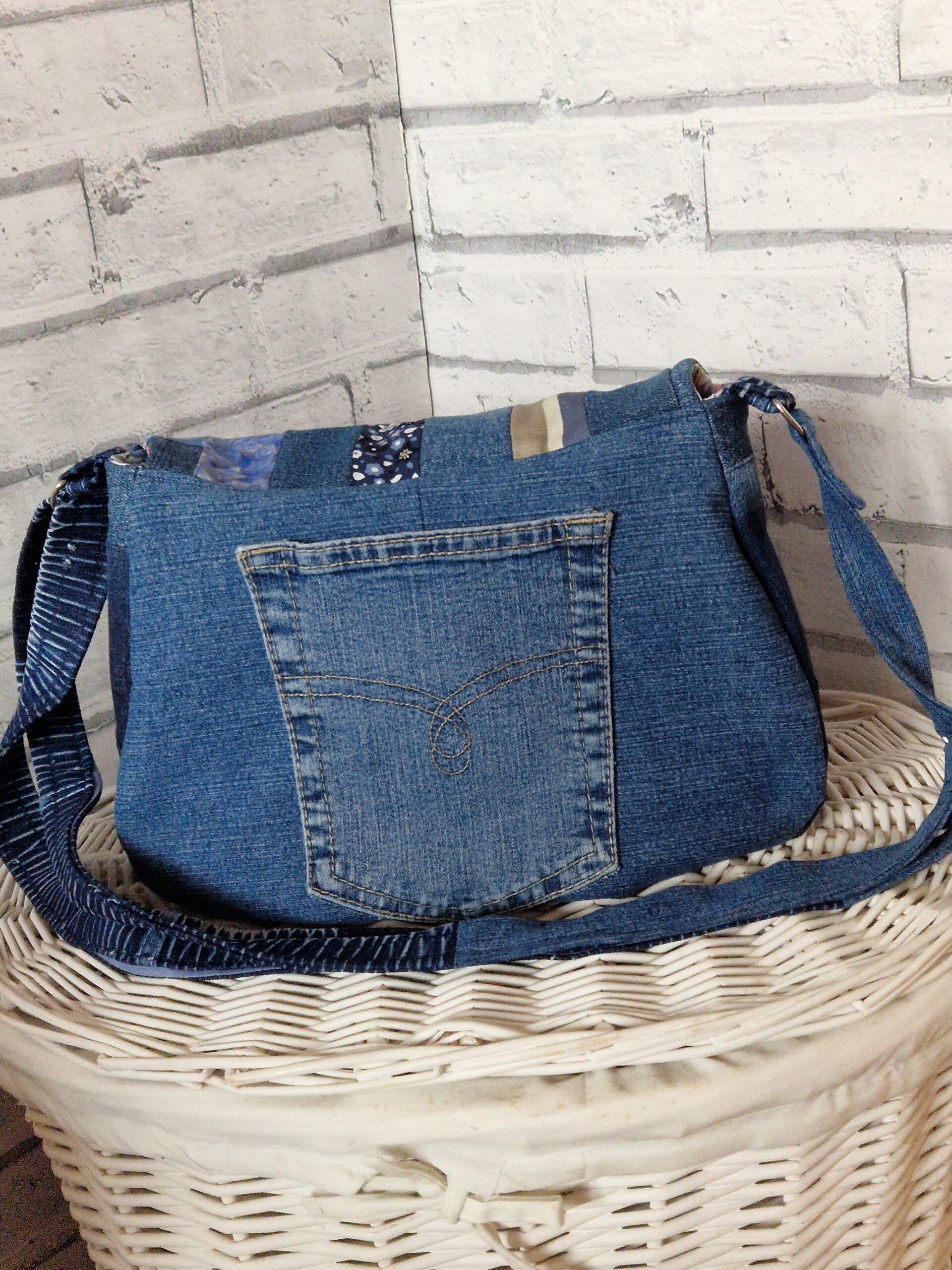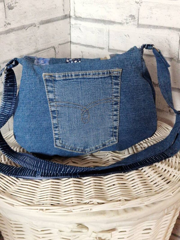 Upcycled denim crossbody bag