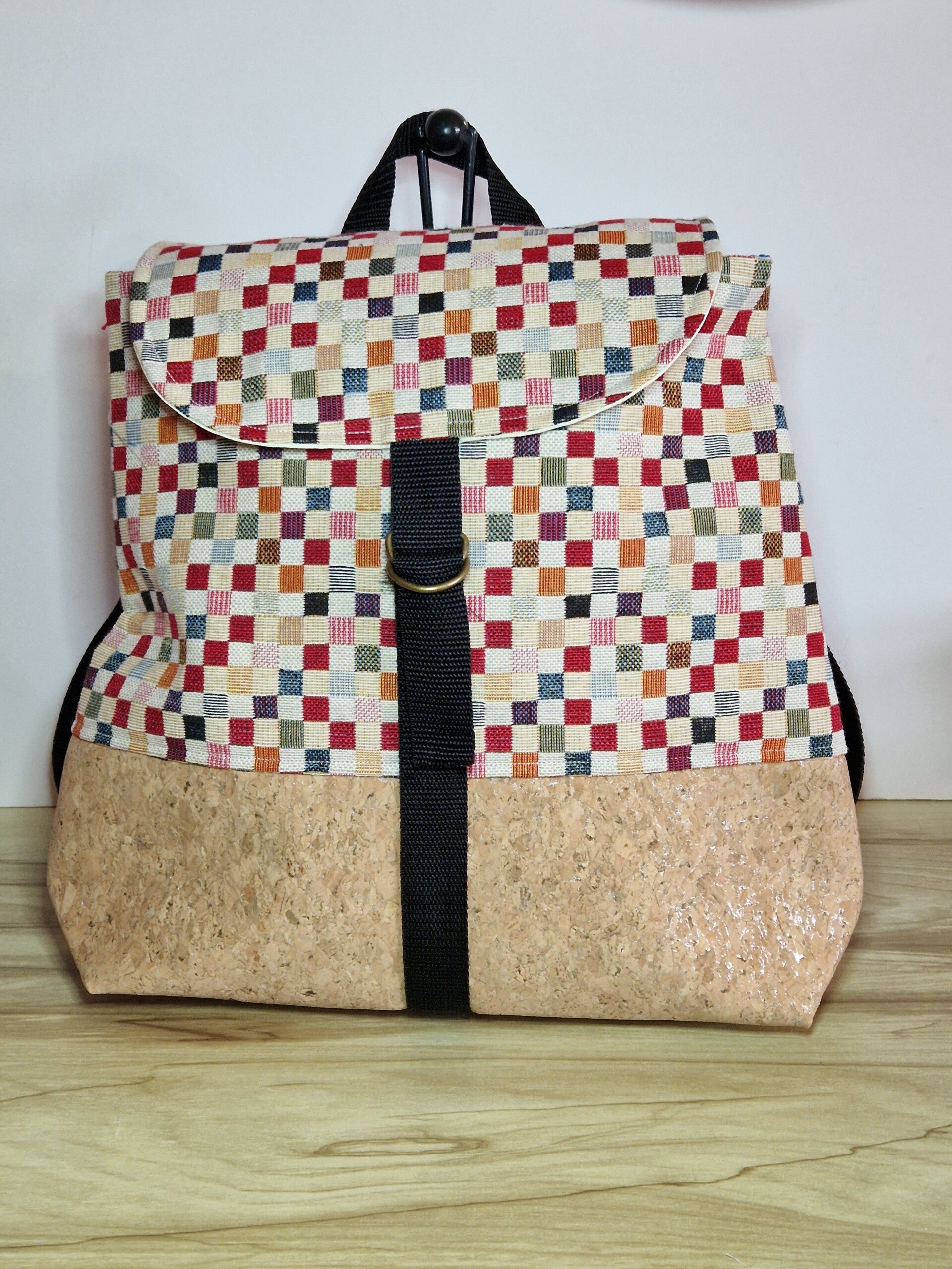 Our backpacks are handmade in cork and a variety of fabrics. They are fully lined with an internal zipped pocket, adjustable backstraps and a carrying handle. They are lightweight and perfect for summer - roomy enough to take everything you need for a day out! Measurements are approx 37cm across, 35cm high and 10cm base.